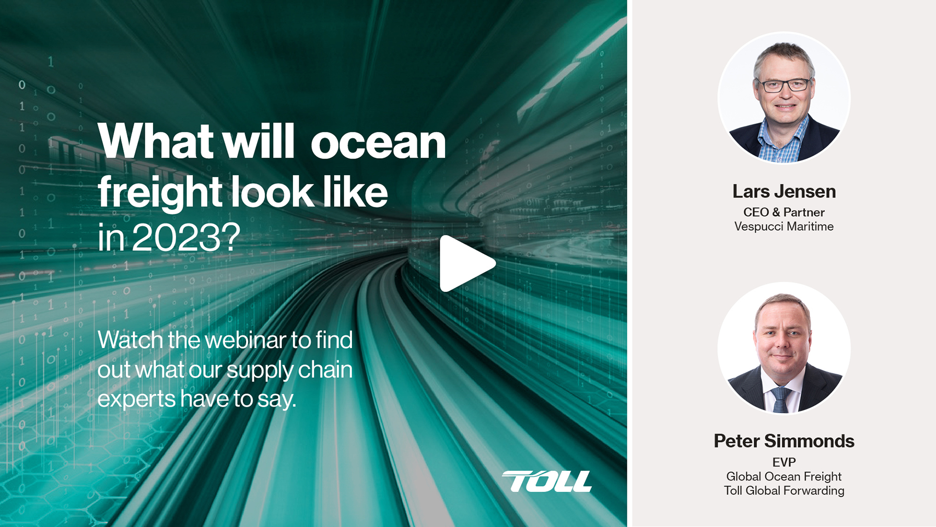 14.9.22: In this webinar, Lars Jensen, CEO & Partner of Vespucci Maritime, and Peter Simmonds, EVP Global Ocean Freight, Toll Global Forwarding, look into factors – from labour to rate developments and congestions, expected to influence shipping in 2023.